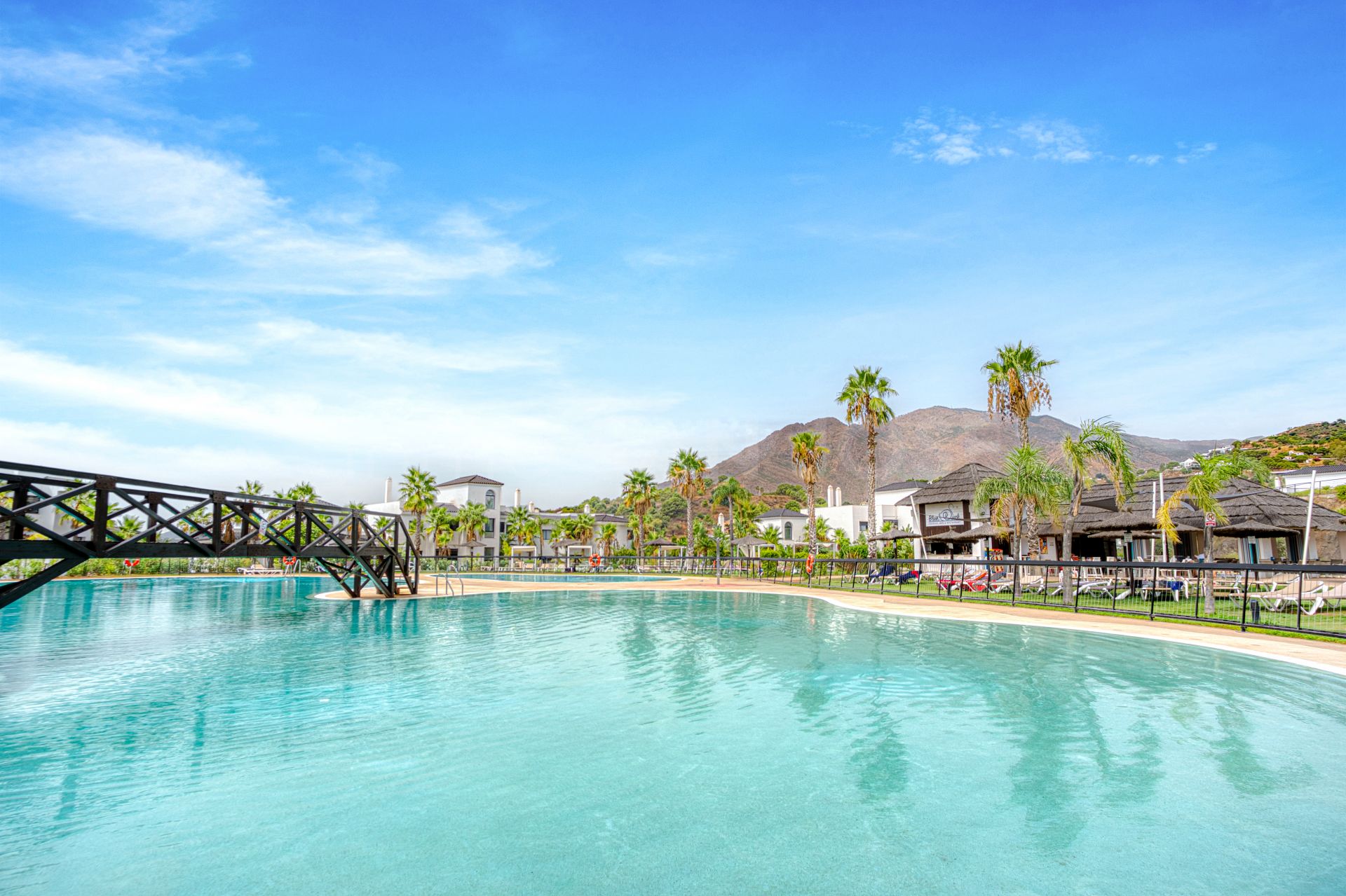 Stylish south-facing three bedroom middle-floor apartment with spectacular sea views, located in the prestigious Mirador de Estepona Hills. This luxurious gated community offers year-round heated infinity pools, tropical gardens, sports facilities, gym, exclusive pool club, concierge service and 24-hour security, all just 800m from Estepona’s centre. The apartment features high-quality finishes, a fully equipped kitchen with laundry area, spacious living and dining room with fireplace and large covered terrace, master suite with en-suite bathroom, large walk-in wardrobe and direct access to the private terrace, plus two guest bedrooms sharing a family bathroom and an additional guest toilet. Further benefits include air-conditioning, parking space, storage room, and the option for short-term rentals making it a perfect investment opportunity.