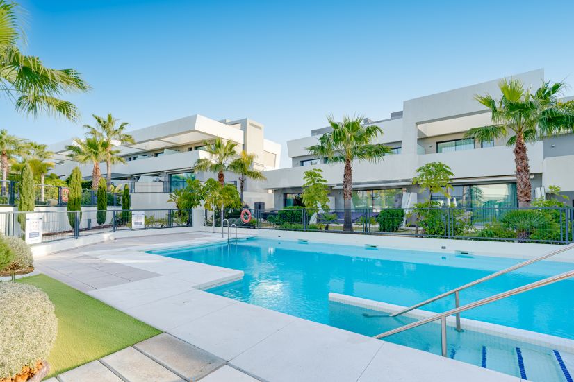 Exceptional four-bedroom townhouse located in an exclusive boutique development of just 48 contemporary luxury townhouses, set on an elevated plot in La Cala de Mijas. The gated community is surrounded by beautifully landscaped tropical gardens and offers three communal swimming pools. Ideally positioned within walking distance to the beach and the vibrant town centre of La Cala. The ground floor features a bright open-plan living and dining area with a modern fully fitted kitchen, opening onto a private garden with direct access to the communal pool, creating an ideal indoor–outdoor lifestyle. This level also includes a guest bedroom and a full bathroom. On the first floor, the property offers a spacious master suite with a private terrace, two additional guest bedrooms, and a stylish shared bathroom. The upper level leads to a generous private solarium, complete with a plunge pool, perfect for relaxing or entertaining. The lower level provides a large multipurpose room, ideal for a gym, home cinema, games room, or additional living space, along with a laundry room and direct internal access to the garage. Additional features include hot and cold air conditioning, two private parking spaces and concierge service. This property offers a perfect combination of contemporary design, comfort, and a prime coastal location with short term rentals allowed within the community.