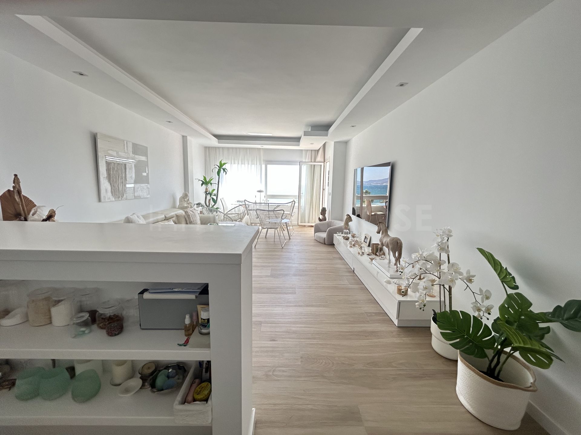 WONDERFUL APARTAMENT BY THE SEA. It has 2 bedrooms and 2 ensuite bathrooms although it was 3 bedrooms. Fully renovated, it has the kitchen open to the living room and the views are unbelieveble. It has a large terrace and views of the entire coast to Marbella. The urbanization has 24h security, communal pools of children and adults and access to the pedestrian walk of the Paseo Marítimo.