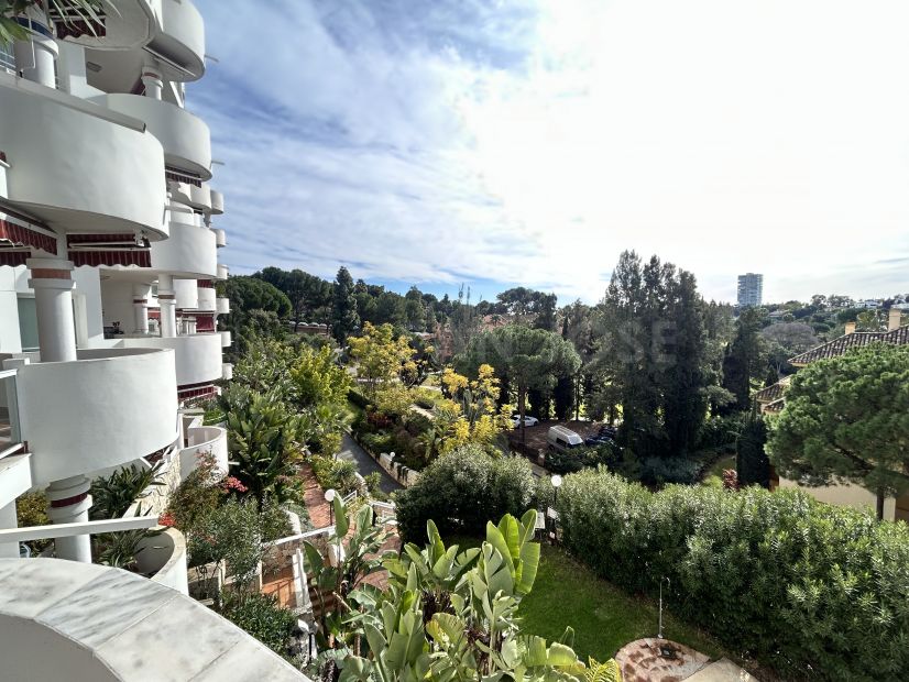 Excellent 2 bedroom and 2 bathroom apartment next to Golf Rio Real. Width and brightness in the living room with large terrace and open views to the Golf. very easily are made 3 bedrooms; Bedroom with en suite bathroom and another bedroom with closed terrace that can be transformed into a dressing room or office and a full guest bathroom. The kitchen with bar area and laundry-tendedero. includes underground parking space. Elegant and well preserved building with architecture award. Private enclosed and with communal gardens and pool, all well maintained and recently renovated facade. It is worth seeing!!!