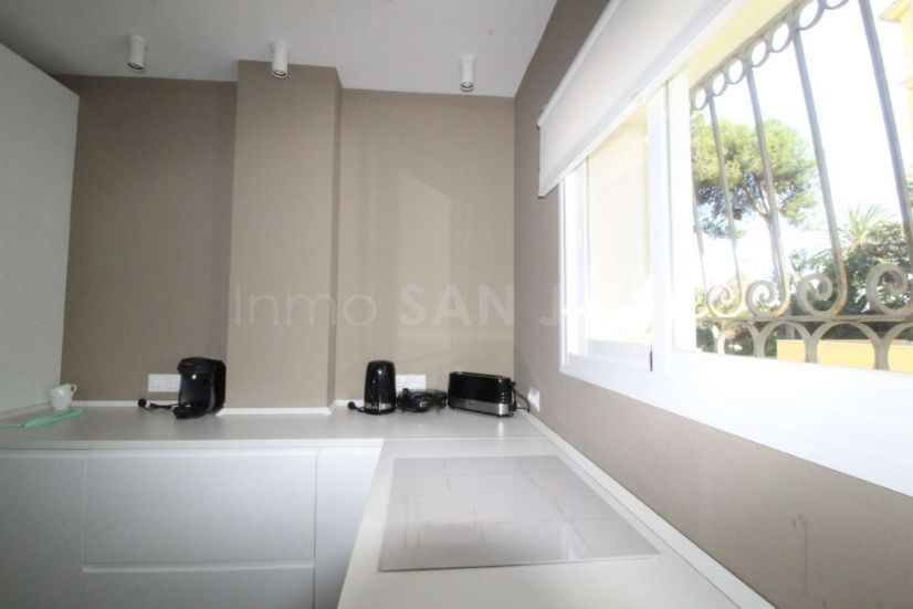 On the 1st LINE BEACH Located in the urbanization within a wonderfully unique natural environment, enjoying an exceptional climate, this apartment offers all possible comforts as it has been recently renovated. Urbanization with beautiful tropical gardens that have 2 swimming pools. This Urbanization is secure and has a 24h concierge/security and the beach is accessed from a gate located next to it, PUERTO BANUS is a two minute walk away either along the beach or along the promenade. It is a spacious recently renovated apartment with 3 bedrooms and 3 bathrooms with several terraces with access to the well-kept gardens and great light, the American kitchen integrated in the living room with high-end appliances, it even has the detail of the ceramic hob in white. Then it has 2 main bedrooms with bathrooms en suite respectively and one of them facing south has access to a 2nd terrace. These 2 bathrooms face the outside so they have great light and ventilation. The 3rd bedroom in the entrance area has next to it another bathroom with a spacious shower and for guests. This 3rd bedroom has access to a 3rd and large west facing terrace with afternoon sun. This west terrace, connected to the main exit terrace from the living room, and this part has a beautiful arcaded area.