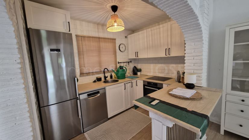 Esta casa adosada de dos plantas, con ático y jacuzzi, ha sido completamente reformada, incluyendo suelos, paredes, cocina y baños. La casa cuenta con un luminoso salón (interior y exterior) y una terraza privada.