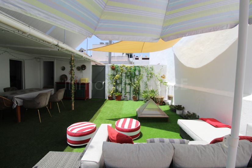 CASA MATA EN EL CENTRO DE SAN PEDRO DE ALCANTARA. 216M2. Por ser casa mata tiene mucho encanto y singularidad. Amplia en metros y en frescor, tiene una excelente calidad de construccion, amplios espacios, amplios dormitorios, Se renovó recientemente baños nuevos, todo impecable. Tiene hall de entrada y se sube a la primera planta por escaleras donde encontramos salón terraza, cocina lavadero y 3 dormitorios y 2 baños completos. En la planta superior tiene otro salon/dormitorio, como apartamento independiente con cocinita y gran terraza cubierta y descubierta con placas solares. IDEAL PARA INVERSORES Esta vivienda tiene muchas posibilidades ya que se puede construir otra planta de 100m2 o bien segregarla en 2 viviendas , realzando aun mas su valor.