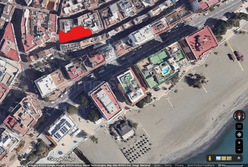 Parcela de 190 m² en la mejor esquina del casco antiguo de Estepona, a 50m de la playa – edificable hasta 800 m²