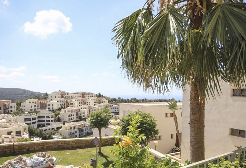 El piso ofrece vistas panorámicas hacia el mar Mediterraneo y el campo circundante.